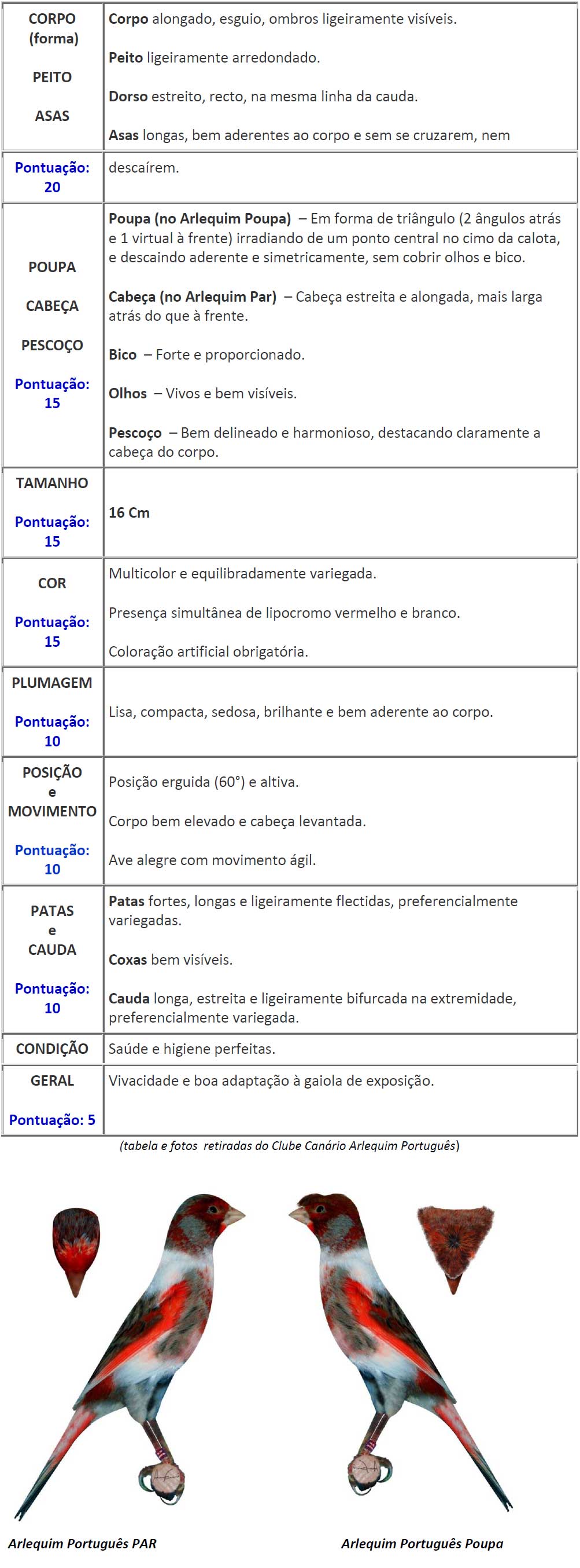 Centremo-nos, unicamente, na essência do Standard da RAÇA do Canário Arlequim Português: